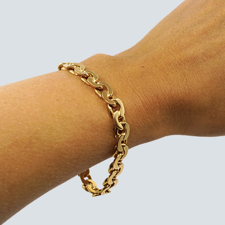 Armbånd i 18 kt. guld. Sammensat af facetslebne led i kraftig kvalitet.