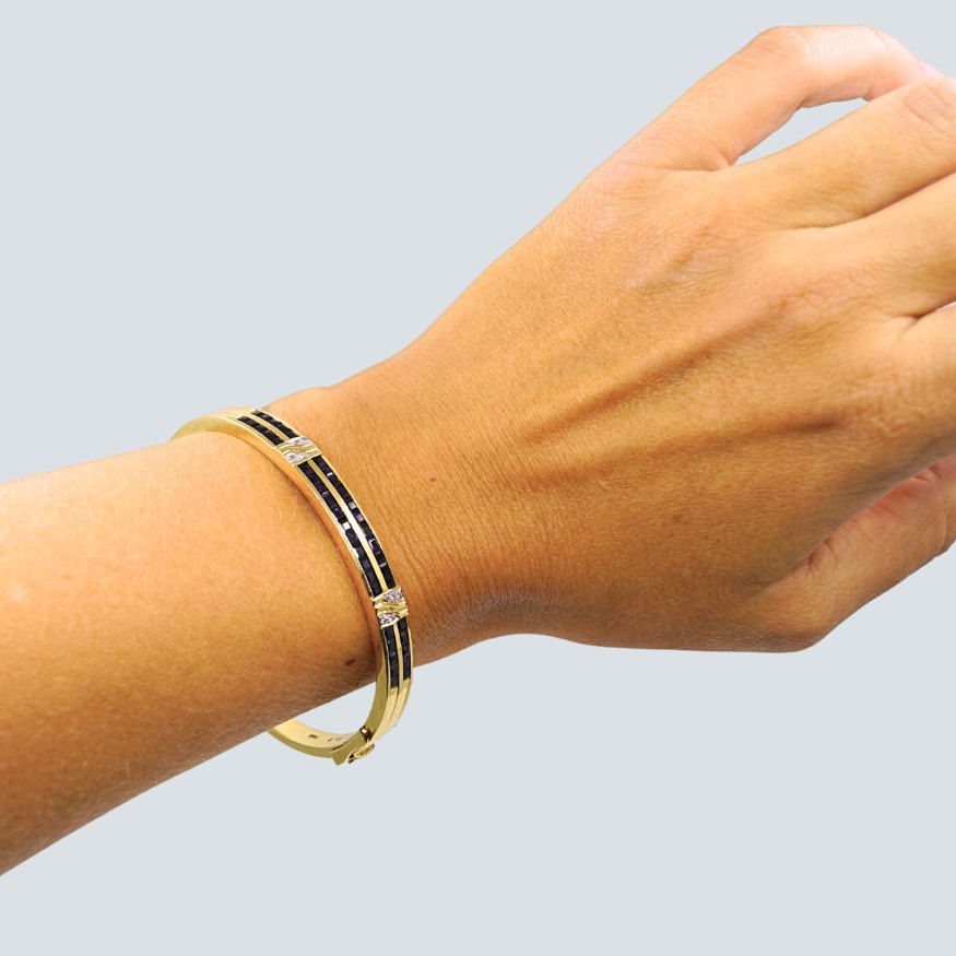 Armring af 18 kt. guld prydet med safirer og diamanter