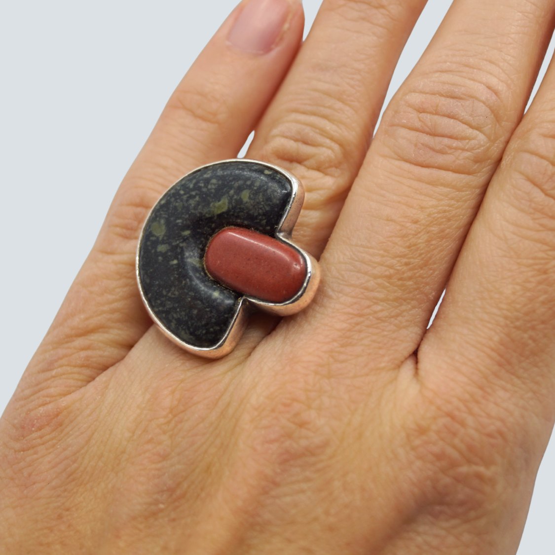 Agnete Dinesen; Kraftig ring af sterlingsølv prydet med to sten.
