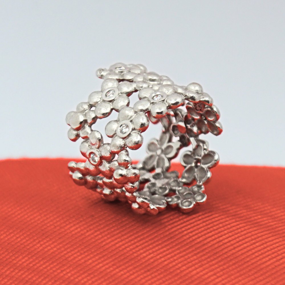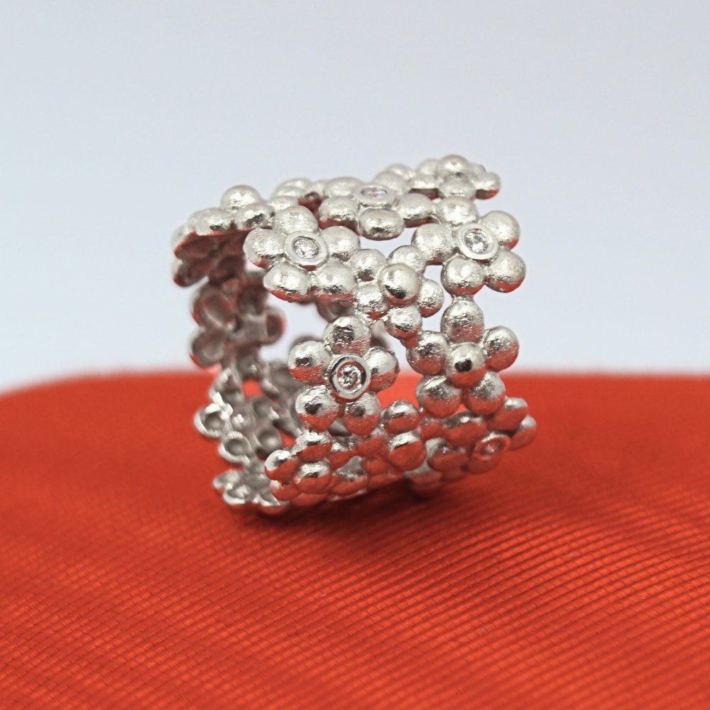 Ole Lynggaard; Hyldeblomst ring i 14 kt. hvidguld med diamanter