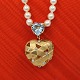 Hjertelås med blå sten: 1,5 x 1,3 cm.