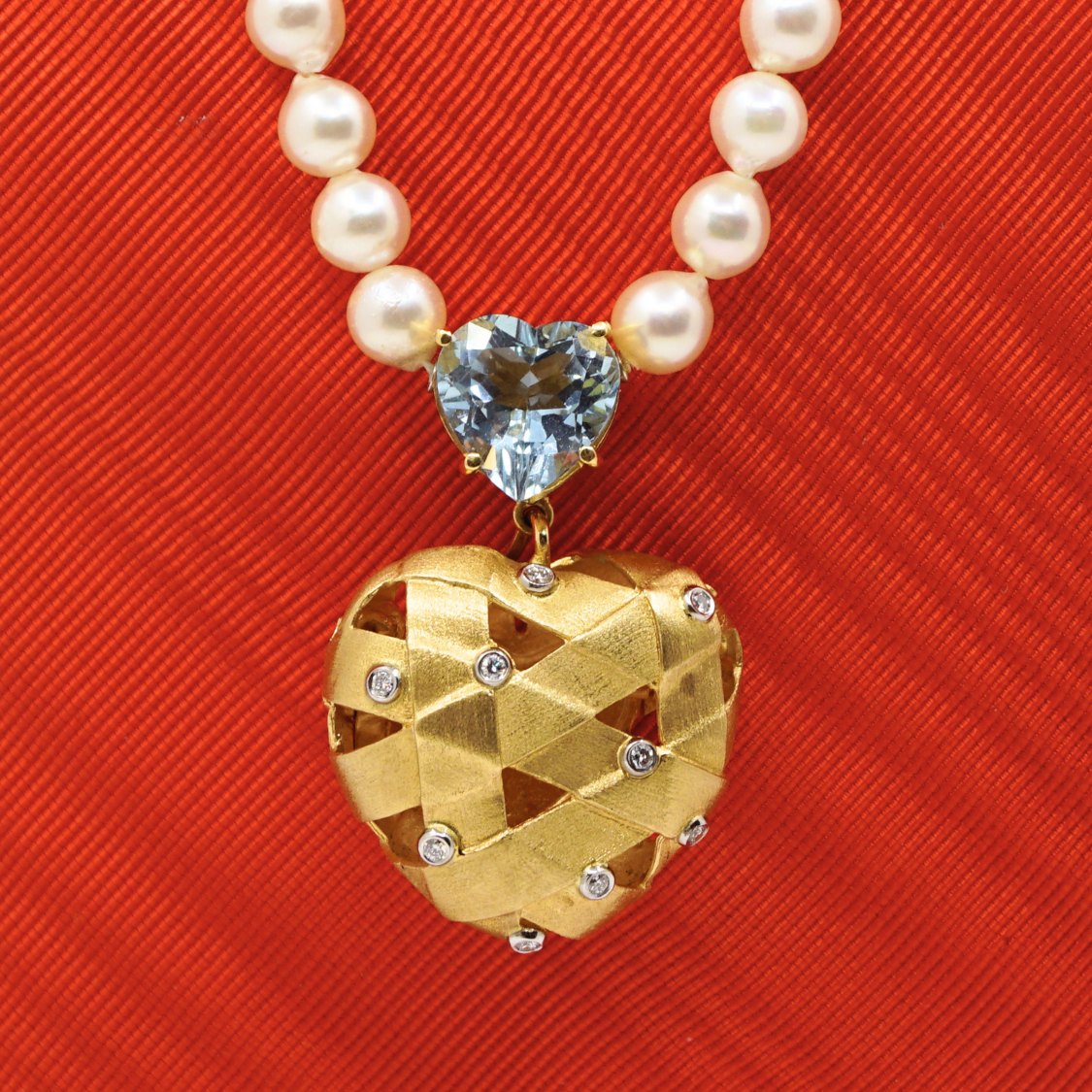 Ole Lynggaard; Flettet hjertelås med diamanter + hjertelås med lyseblå sten
