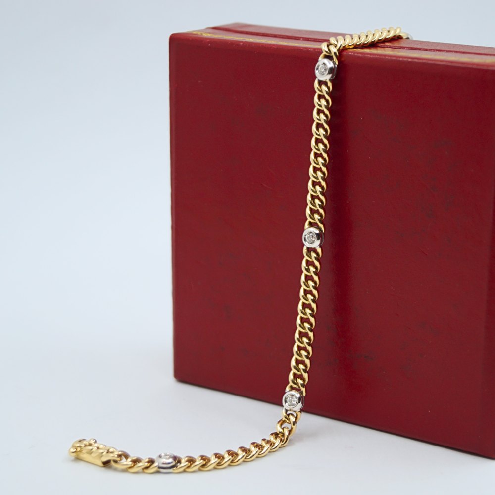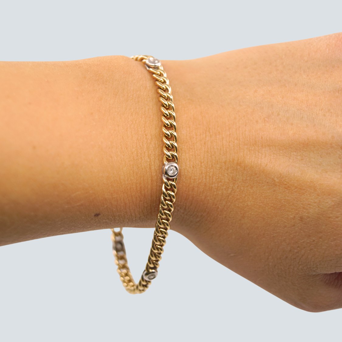 A bracelet of 14k gold. With five diamonds set in white gold, a total of 0.24 ct. W VS.