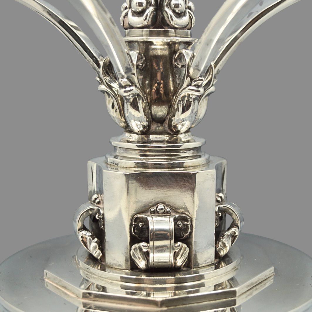 Evald Nielsen; Fem-armet lysestage i sølv.