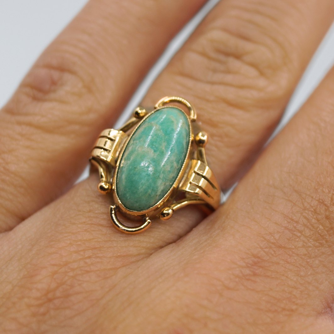 Bræmer-Jensen; Ring i 14 kt. guld med turkis sten