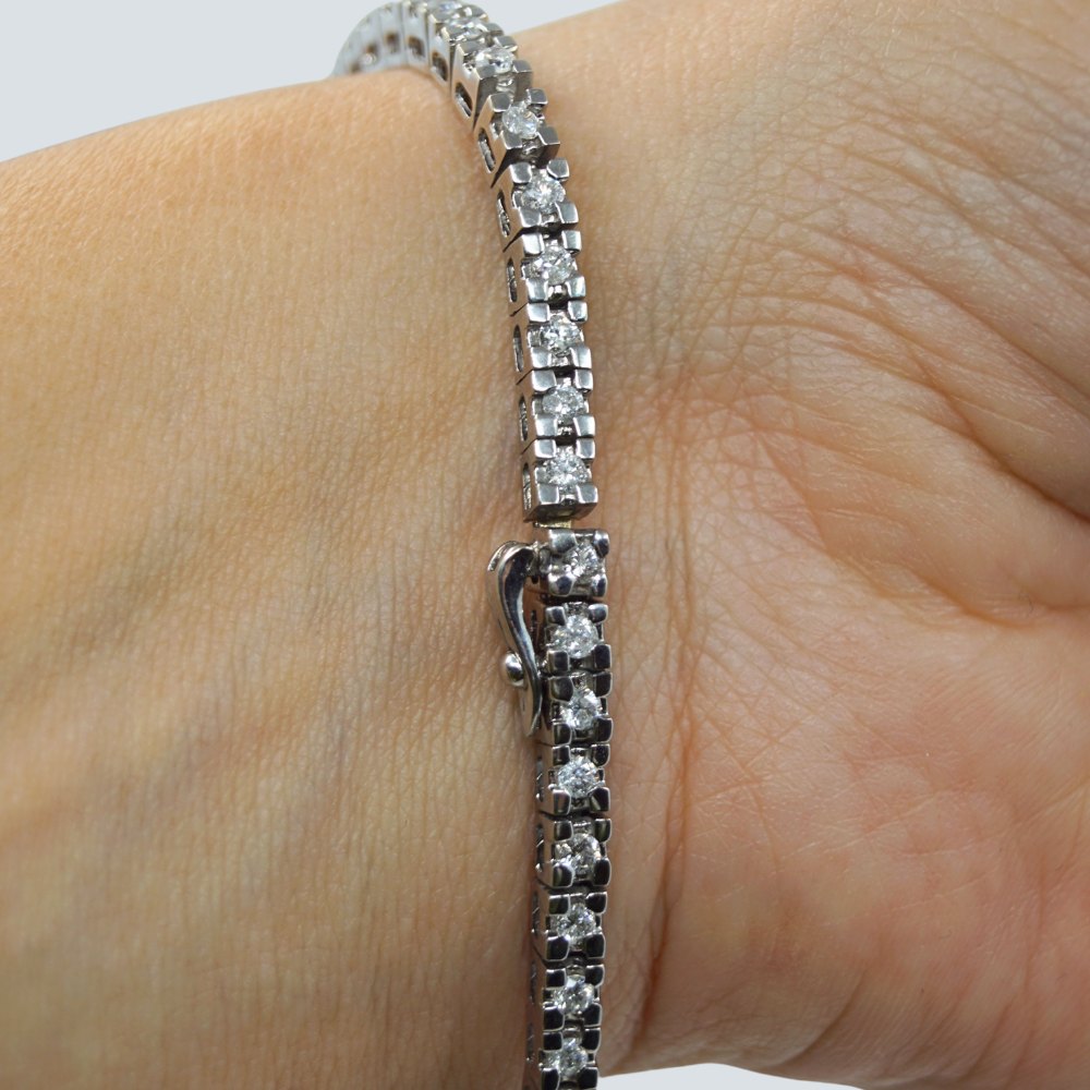 Tennisarmbånd af 18 kt. hvidguld prydet med brillanter. Brillanter i alt ca. 1,53 ct. Wesselton - SI. Monteret med kasselås samt en sikkerhedslås. Diamantarmbånd.