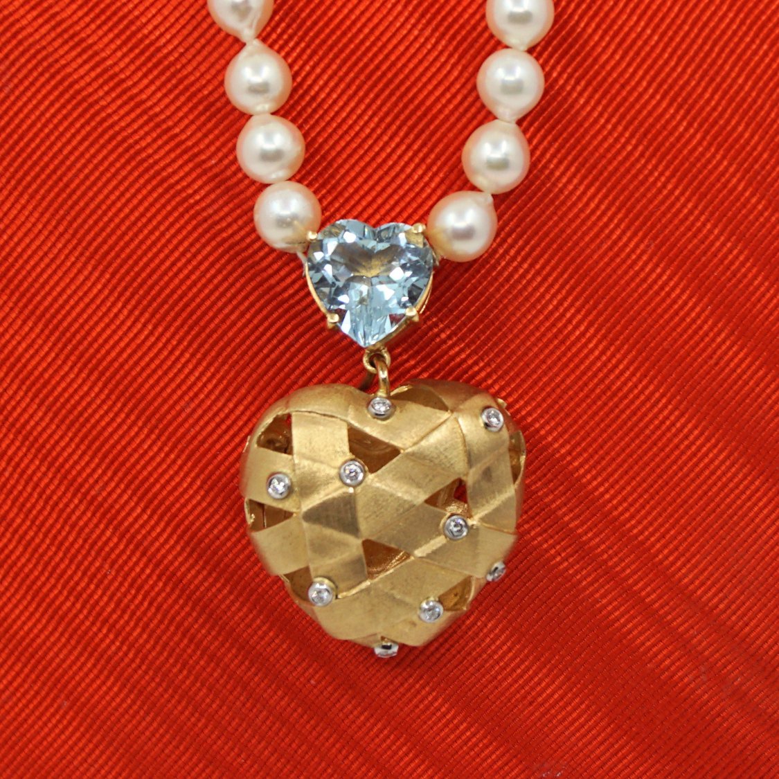 Ole Lynggaard; Flettet hjertelås med diamanter + hjertelås med lyseblå sten