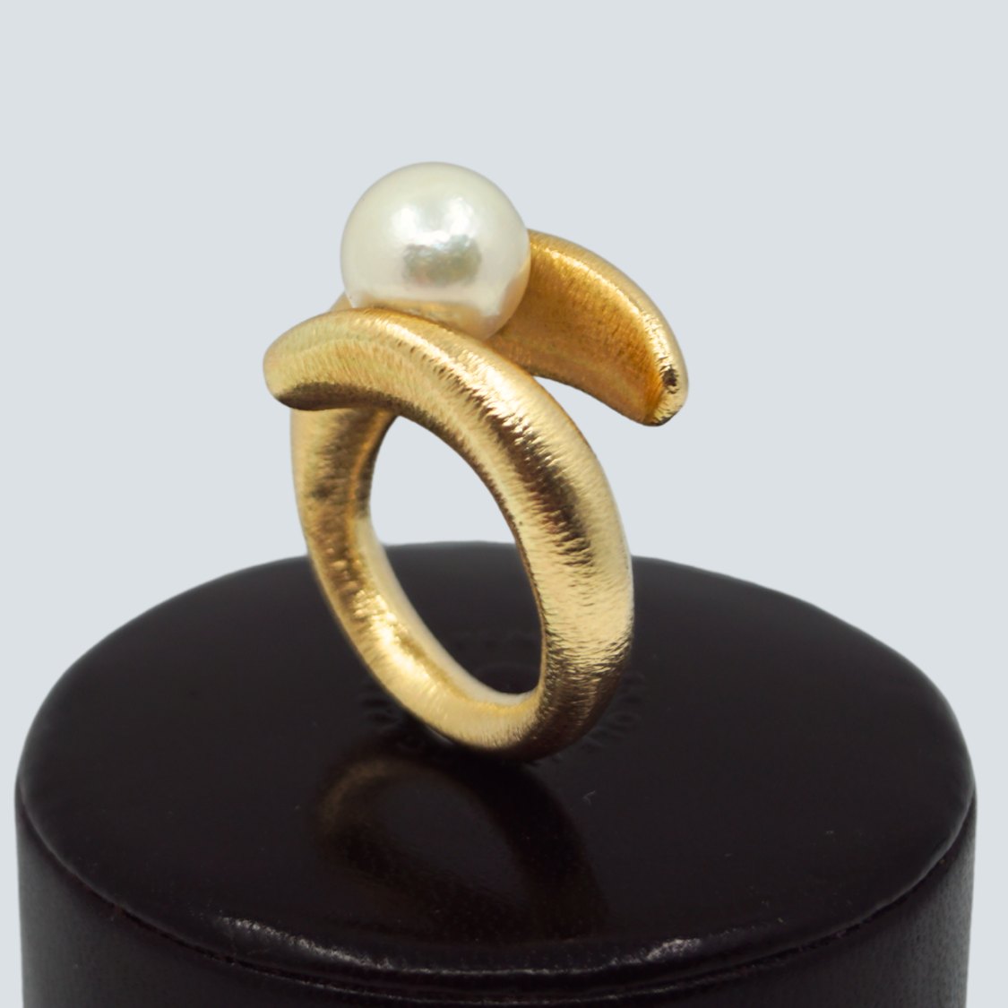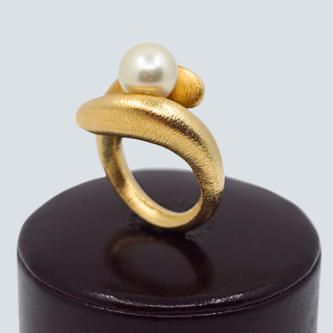 Ole Lynggaard ring af 14 kt. guld, prydet med perle.