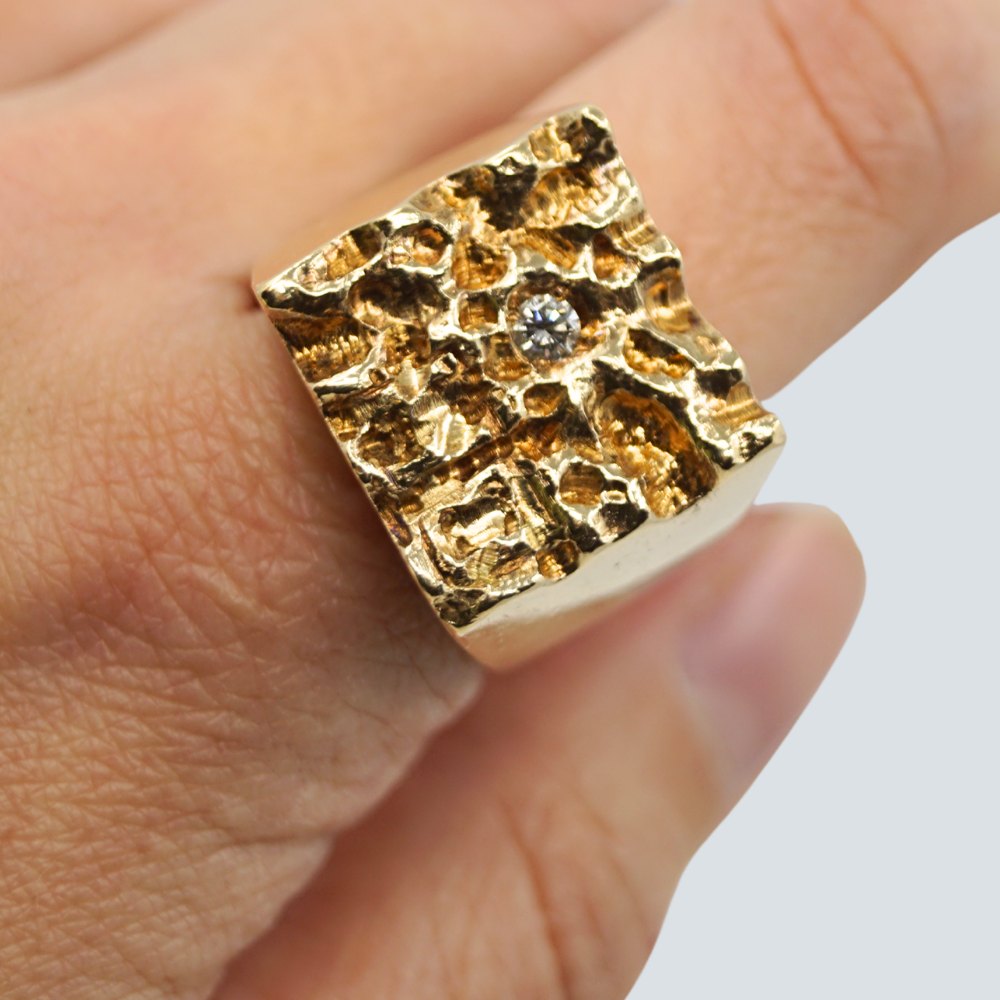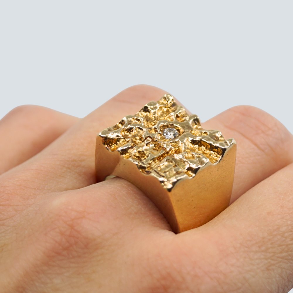 Ejvind Sørensen; Stor signetring i 14 kt. guld med diamant, ca. 0.10 ct. Kraftig kvalitet. Vægt: 50 gram.